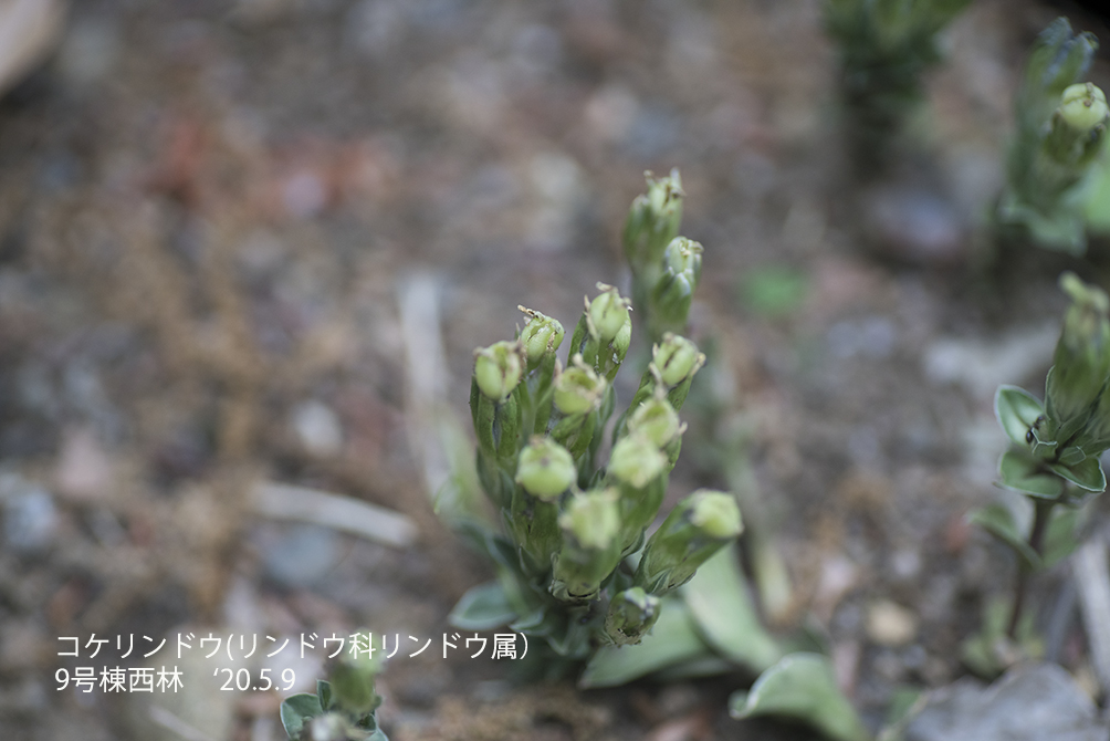 コケリンドウ:リンドウの仲間では小さいほうで、草の間に埋もれるように咲く。写真は未だ蕾の状態だがフデリンドウと同じような花が咲く。