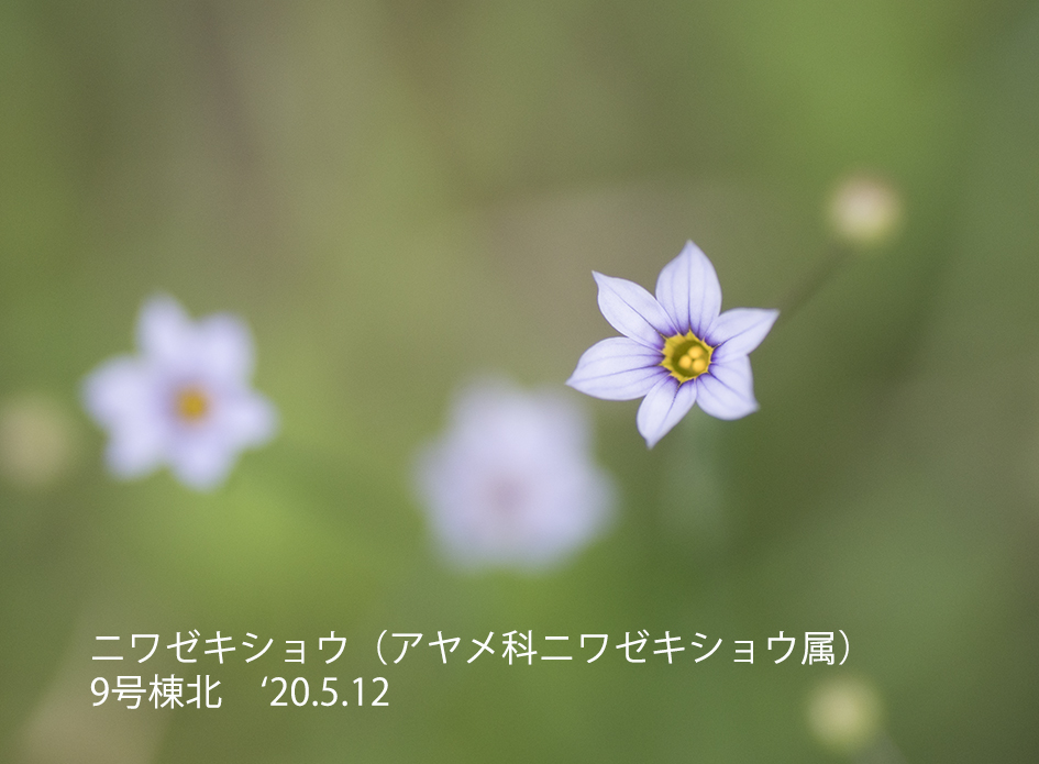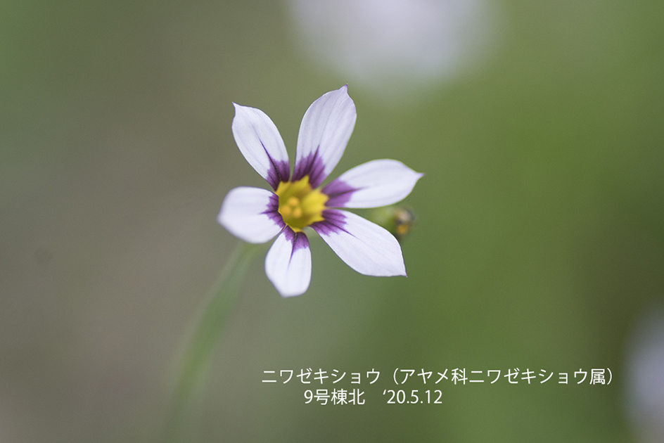 ニワゼキショウ:北アメリカ原産の帰化植物。同じショウブ科に属するセキショウ(石菖)と細長い葉の形が似ていることから、そして庭先に多くみられることからニワゼキショウの名がついた。 花の色、形状に関して変化が多い。