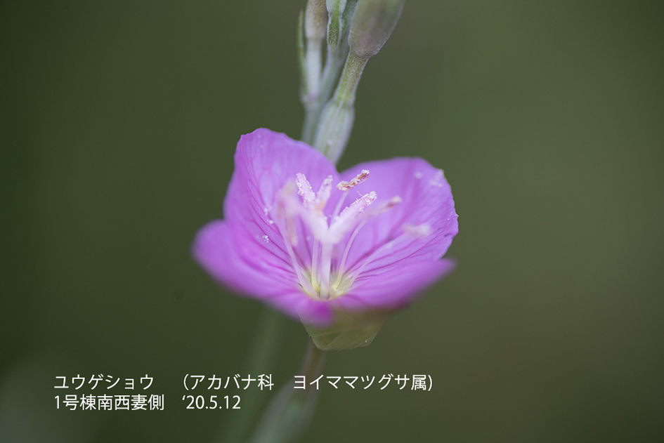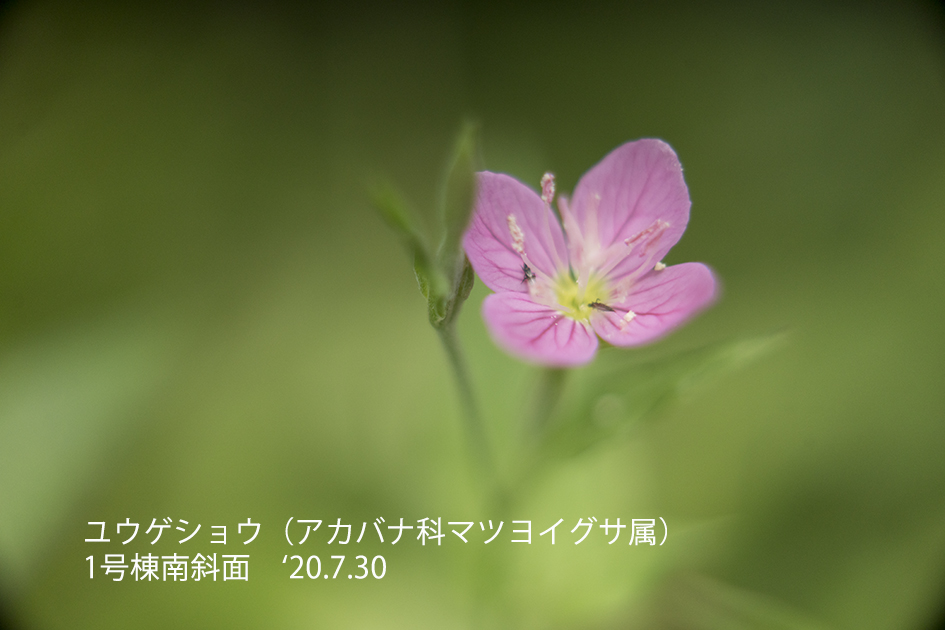 ユウゲショウ:薄桃色の艶っぽい小さな花を夕刻咲かせることからこの名がついた。が、昼間でも見ることが出来る。多年草なので次の年も同じ場所で咲いてくれる。